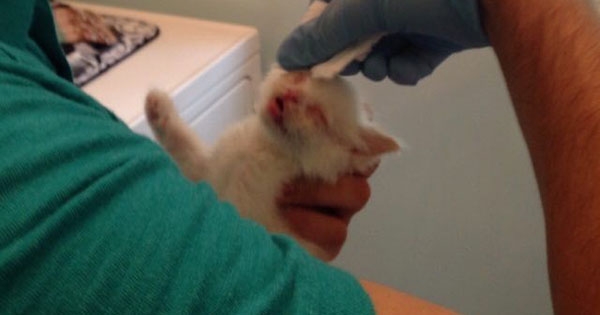 几年前,美国田纳西州的一名好心人在路边捡到了一只6週大的猫咪,并将牠送到了「Chattanooga猫咪诊所」。