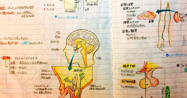 上学时大家都整理过笔记,不过有的人整理得很认真,有的人却草草了事。下面这名日本网友就属于前者,他的笔记就像一本精简版的教科书,翻开看能把老师都惊到。