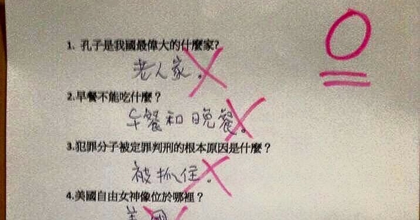 ▼考卷上的问题都很简单,比如「孔子是我国最大的什幺家」、「…
