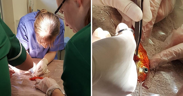 人们经常将猫咪、狗狗等宠物当成自己的家人,就算牠们生病也不离不弃,还会悉心照顾,带牠们去医院治疗。下面这个英国家庭的宠物也生病了,不过牠是一只金鱼。