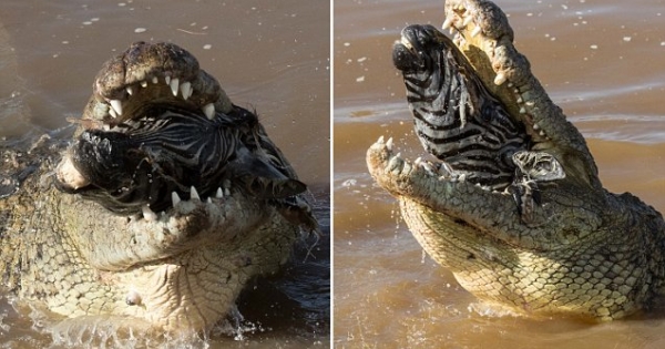 不久前,摄影师Subramanian Sridharan在肯亚马赛马拉野生动物保护区拍摄到了惊人的一幕。一只贪婪的鳄鱼独自吞吃一只斑马,就连身体都撑得胀起来。
