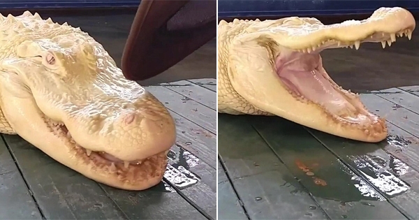 美国佛罗里达州的鳄鱼公园中住着一只叫做「珍珠」(Pearl)的短吻鳄。这个温柔的名字可不是形容牠性格的,而是因为牠的皮肤。