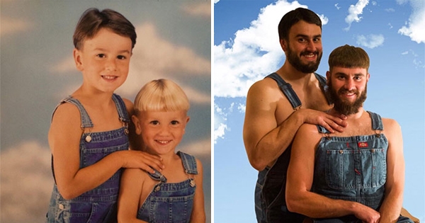 翻开相簿看看童年时的自己,让人感触颇深。那段单纯的岁月一去不复返,但我们可以想办法纪念。下面这些人就想到了超棒的纪念方法,他们模仿童年时的模样拍照,一边是稚气未脱的小屁…