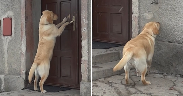 冷冷的寒冬里,想必有不少人躲在家中取暖,不想出门吧?国外一只叫做露西(Lucy)的拉布拉多本来在门外玩耍,但因为外头开始下雪,牠便想回到家中取暖。没想到在试图转门把不开后,这只拉布…