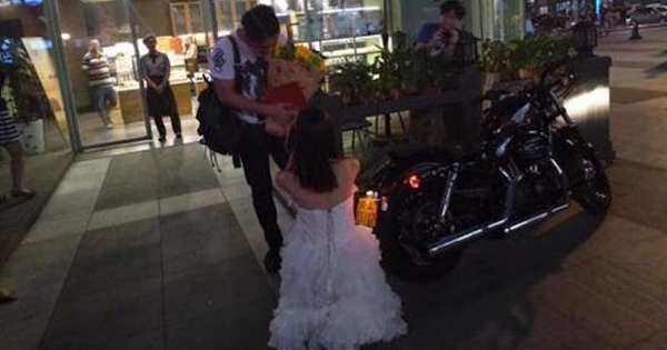 大多数情况下,求婚都是由男生主动。不过现在女生们也不再一味处于被动地位,开始勇敢追爱。不久前,大陆就发生了超浪漫的一幕,有人骑哈雷机车来到广场,手持鲜花和房产证向爱人求婚…