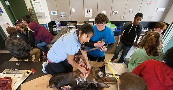 一般来说,老师、家长不会让孩子接触危险刀具,更不会让他们看到血淋淋的画面。不过美国阿拉斯加古斯塔夫的一所学校却不同,他们筹备了一场特别活动,带中小学、幼稚园学生去解剖麋…