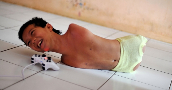 你能想像没有四肢的生活吗?我们早已习惯用手拿取物品,用脚走路,一朝失去,恐怕难以忍受。印度小男孩迪尤却不同,他天生没有手脚,必须依靠父母照料,就连吃饭、穿衣这样的小事都无法自…