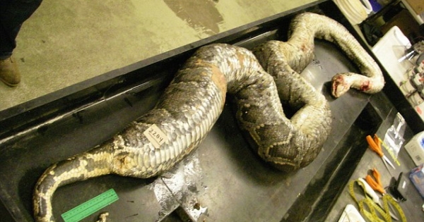 众所周知,蛇是自然界中的大胃王,能够吞吃比自己体型大得多的动物,但人们看到下面这只缅甸蟒时,还是被吓了一跳。牠长约4.8公尺,重105磅,体内有很多未消化的动物遗骸,排泄物足足有14…