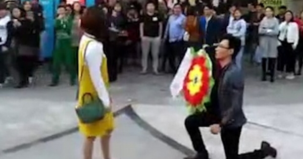 结婚是人生中最浪漫的决定,与心爱的女孩步入婚姻殿堂之前,男生们都会精心设计求婚的环节。不久前,大陆重庆出现了荒诞的一幕。一名男生在街头跪地向女友求婚,场面非常浪漫,但他拿…