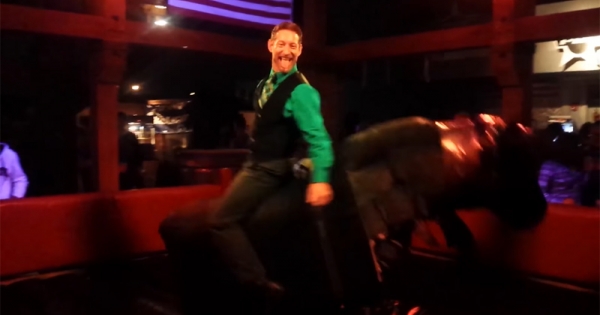 经常在国外酒吧里出现的「骑牛机」疯狂程度可不亚于真正的牛,不少挑战者才刚坐上去不久,很快就会被它激烈的律动给甩下来。不过国外却有一位超强的「牛仔」能够在上面移动自如…