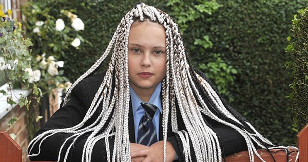 中小学校规中总有很多关于衣服、头髮的规定。英国14岁女孩Chenise Benson是碧昂丝·诺利斯(Beyoncé Knowles)的粉丝,很久之前她就喜欢偶像扎双色小辫的造型,最近终…