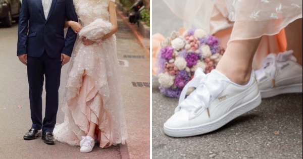 一般大家在穿婚纱的时候一定都是美美的礼服搭配高跟鞋,但是没想到近年来的运动鞋风潮也延烧到了婚纱界,就算穿婚纱一样可以用运动鞋混搭!