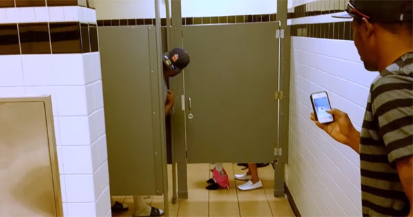 公共场所的厕所虽然比较私密,但在那里做太夸张的事,还是会引起围观。下面这些男生发现一对情侣在厕所爱爱,忍不住露出坏笑,还拿手机偷拍。当隔间门打开的一刻,他们立刻爆笑,因为「…