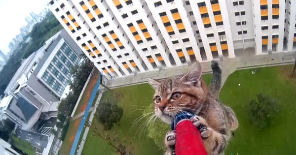动物组织的救援人员经常会面临一些险峻的状况,新加坡最近的一起救援事件就让人十分心惊胆跳:一只小猫卡在12楼外的窗台边,随时都会失足坠落;救援人员只好伸出长竿,但却一直勾不住…
