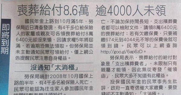 大家对于国民年金的了解有多少呢?只要身份无公、劳、农、鱼保在内,其实都是国民年金的保户,而且国民年金有补助丧葬费,以及遗属年金,都是政府没有主动告知的消息,对于还不清楚的人…