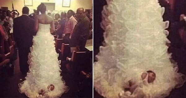 婚礼创意推陈出新的年代,把自己的小孩绑在婚纱拖行走红毯可是头一遭。2014年5月,在美国有一名新娘薛娜(Shona Carter-Brooks)在她的婚礼…