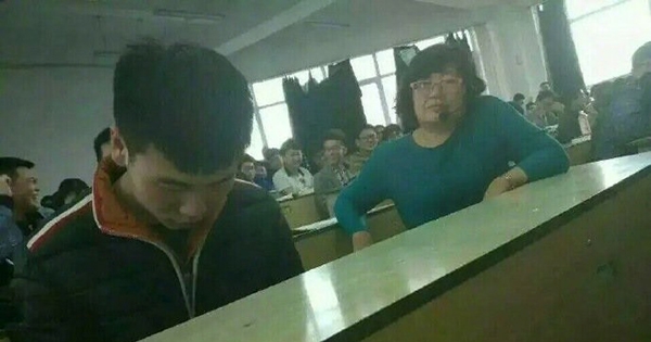 学生时代,大家都有过上课开小差的经历吧。下面这名同学就在课上玩手机,他以为自己做得很隐蔽,其实经验丰富的老师早就看出了端倪,还悄悄坐到了他的旁边。