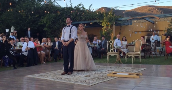按照西方婚礼习俗,新郎新娘在婚礼那天要跳第一支舞。为了点燃气氛,很多新人会事先排练舞蹈,给宾客惊喜。魔术师Justin Willman与摄影师Jillian Sipli…