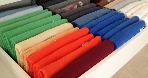 每个人的衣橱中都有不少T恤,因为不良的收纳习惯,其中一些被堆放在角落彻底遗忘。下面这名网友介绍了一种简单有效的T恤收纳方法,只要将它们这样放在抽屉中,打开看时就能…