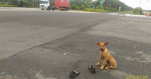 强颱尼伯特过境后,网友Ru Ru在高雄市南星路与中林路口发现一只米克斯叼着一双颱风来袭之前当地驻点工程工人所留下的鞋子,坐在马路中央苦等工人回来;但由于工程已于颱风之前结…