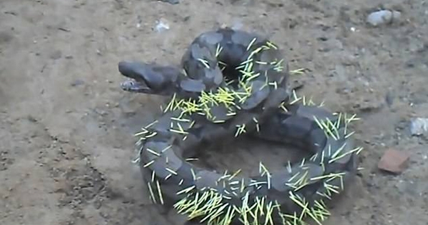 不久前,巴西一名网友分享了一段影片。影片中的蟒蛇本来想要吞吃豪猪,没想到反被豪猪身上的刺扎伤,变成了移动的「仙人掌」。