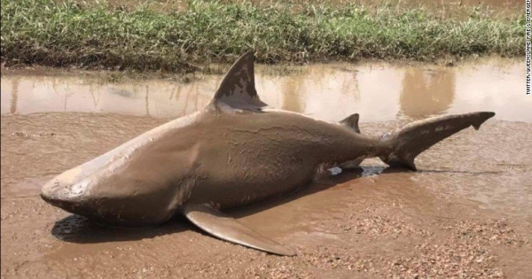 ▼一条1.5公尺长的公牛鲨出现在昆士兰的小镇埃尔的街道上,很遗憾…