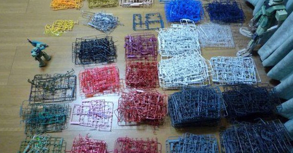 大家一定都有看过组装模型时的边框,通常我们将需要的部件取下后,那些边框就成了废弃品,▼接下来当然就是最热血的环节,开始组装了啊!