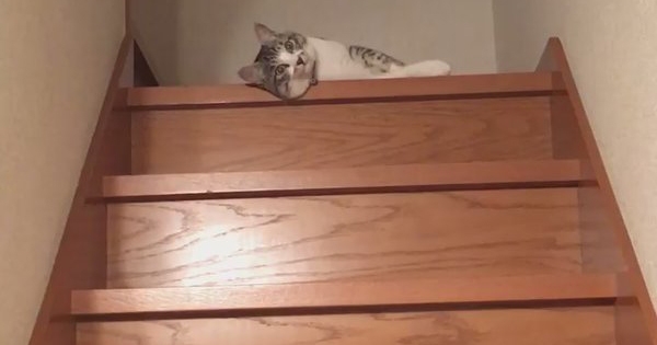 每个人都有突然发懒,不想动、不想说话的时候,下面这只猫咪就是如此。牠不愿意用正常的方式下楼,躺在地上不愿意动弹,所以想出了聪明的下楼方法。主人看到牠的…