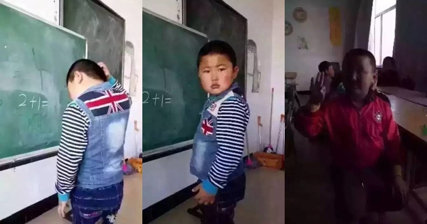 大家小时候会不会很害怕被老师点到讲台上回答问题呢?有时候要是写不出正确答案,就会觉得自己有点糗,不过幸好台下的好同学们都会适时提醒呢!以下这位小弟弟就因为不会「2+1」的…