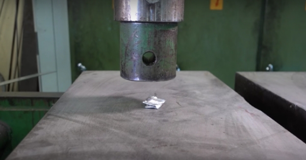 面对强大的液压机,很多坚固的物体都败下阵来。这次YouTube频道「Hydraulic Press Channel」找来一张铝箔纸,对折后使用液压机压下去。人们都说「一张纸不能…