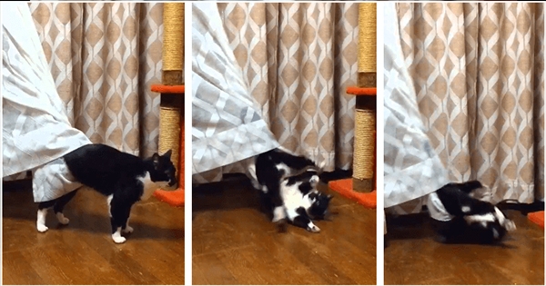 家里有养猫的人都知道,猫咪非常喜欢往狭窄阴暗的地方躲躲藏藏,举凡桌子下、床下、各种角落或是窗帘里面都不放过。这只爱玩的小猫就是因为太会乱…
