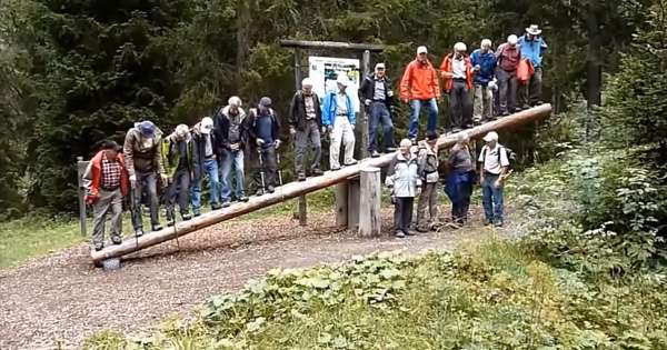 翘翘板是小朋友最爱的游戏之一。下面这14名瑞士阿罗萨阿伯心中也住着贪玩的小孩,他们决定挑战巨型跷跷板,创造奇蹟。刚开始一切顺利,他们全部站在了倾斜…