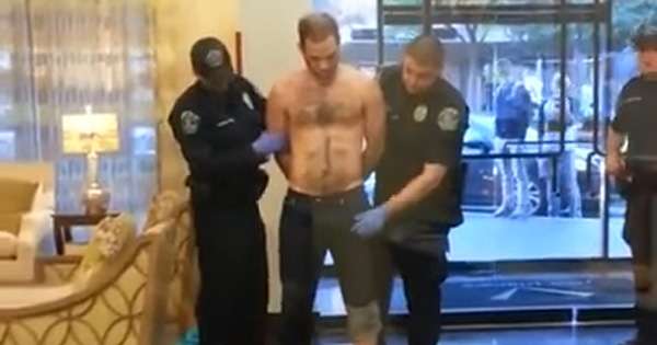 警方将嫌疑犯制服后,首先会搜身,防止对方身上带有武器。下面这名光裸上身的男子突然冲进一栋公寓,发疯般用皮带抽打墙壁,还恐吓里面的住户。路人立刻报警,警察赶到后…
