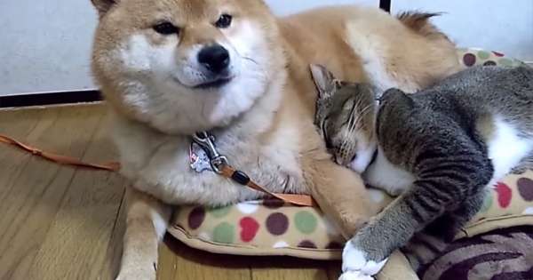 猫咪巴住柴犬手臂的画面太有爱了!