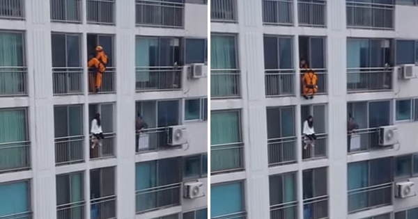 救人的方法有很多种,下面这名南韩消防员就选择了最妙的那个。当时一名女子坐在高楼窗户的护栏上想要寻短,这个位置太危险,稍有不慎就会坠楼。警方在另一个窗户边与她交谈,吸引她…
