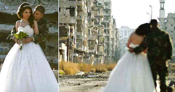 叙利亚战火不断,民众每天都可能面临死亡。即使如此,也无法阻挡人们对家乡的爱。下面这名叙利亚新娘与她当兵的丈夫来到霍姆斯,在城市的废墟中拍摄了一张张…