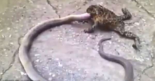 蛇是蟾蜍、青蛙等动物的天敌,经常以这些动物为食。但被逼到绝境的蟾蜍也可能逆袭,对蛇发起攻击。不久前,有人拍摄到一段蟾蜍吃蛇的影片,那只大蟾蜍紧紧咬住…