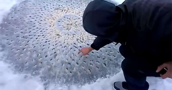 冬天气温下降后,湖面被厚厚的冰层覆盖,美国犹他州的两名网友却在上面发现了奇怪的现象。平整的湖面上出现怪异的圆圈,里面还有密集的点状物。…