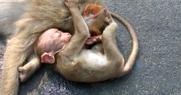 不久前,印度南部发生了一起让人心碎的车祸。一只母猴过马路时被高速行驶的汽车撞倒,小猴看到后立刻冲过去,想要将妈妈叫醒。